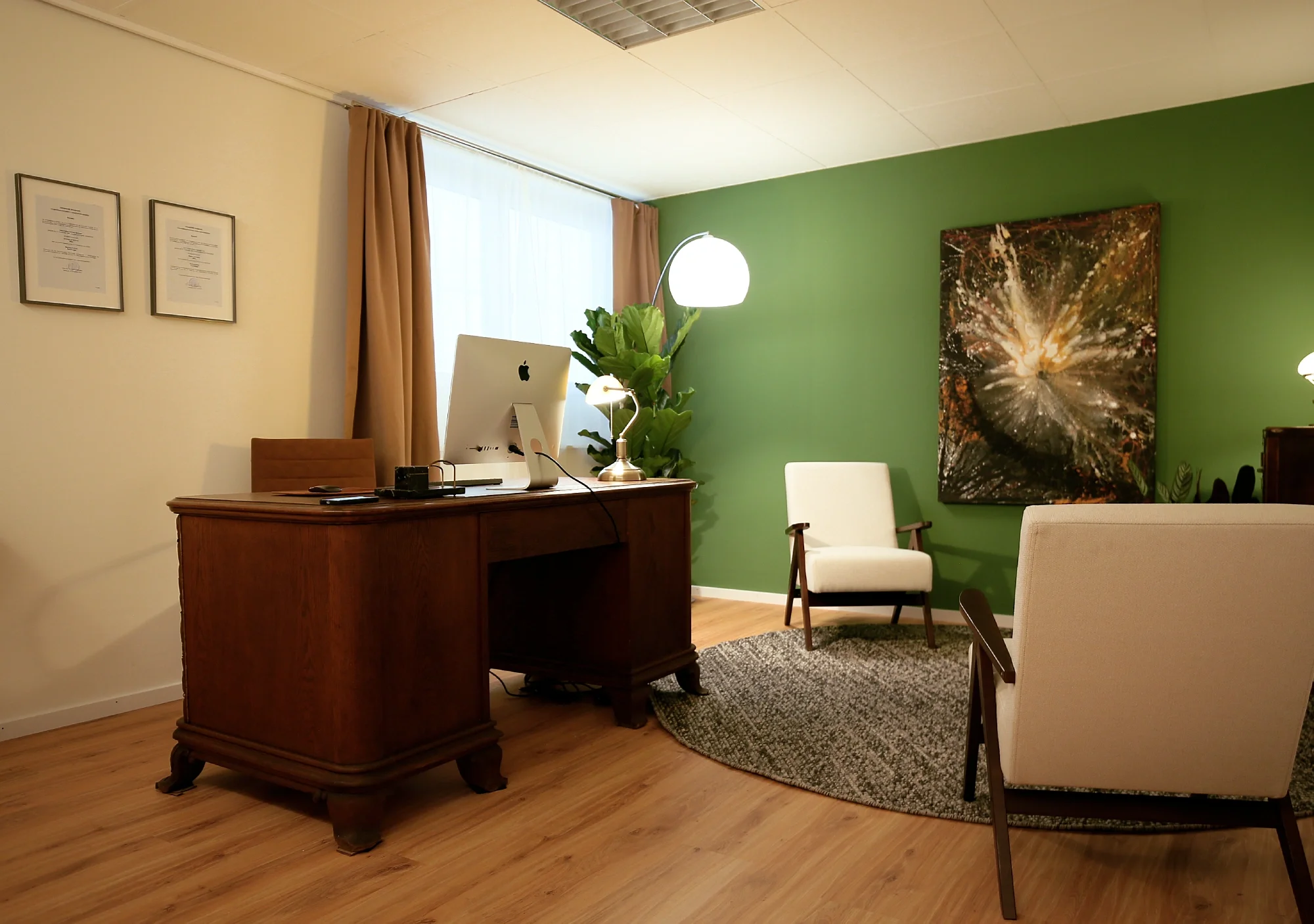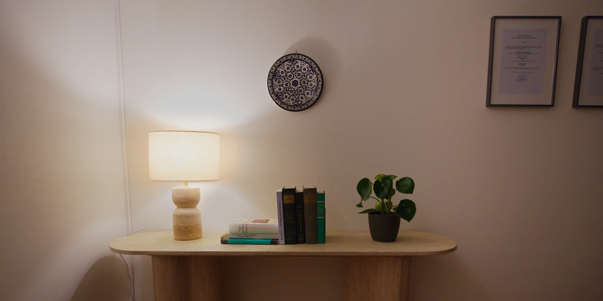 Mein Arbeitsraum bietet eine diskrete, ruhige und angenehm moderne Umgebung für vertrauliche Gespräche. Die Atmosphäre ist gezielt wohlig, klar, harmonisch und an Prinzipien des Feng Shui orientiert. Ein separater Wartebereich und eine Toilette stehen ebenfalls zur Verfügung.